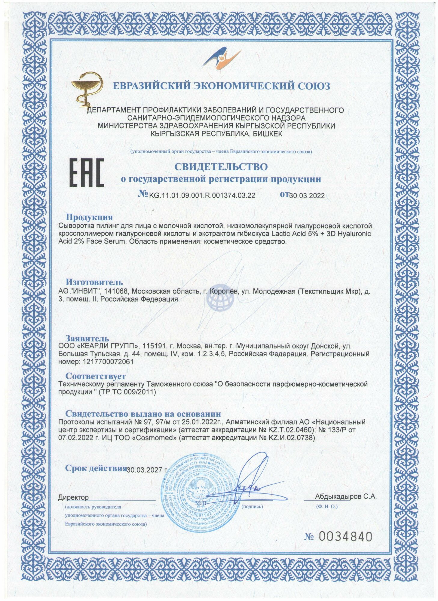 | Назначение | Выравнивание тона кожи, Обновление, регенерация кожи, Увлажнение кожи |