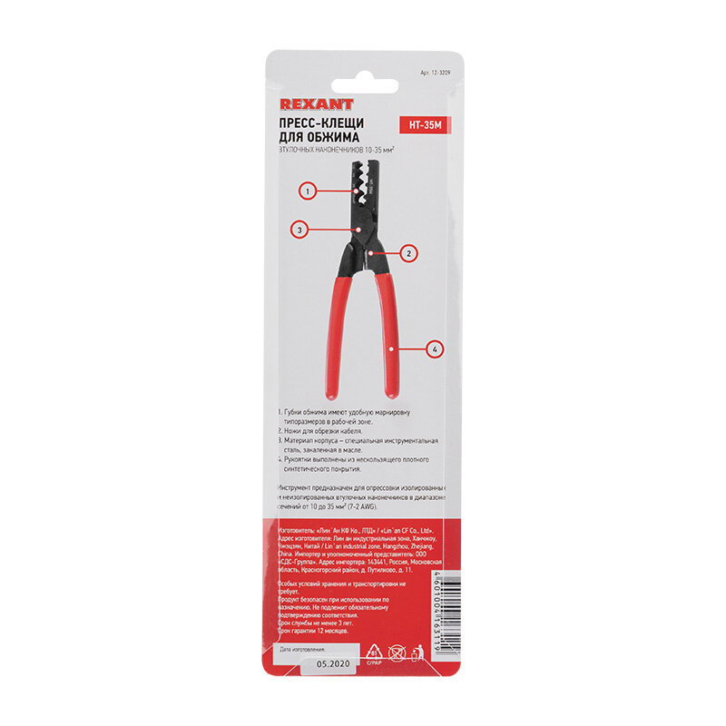 Пресс-клещи Rexant для обжима втулочных наконечников 10-35 мм²