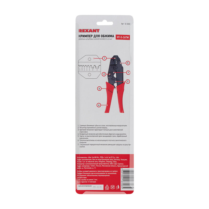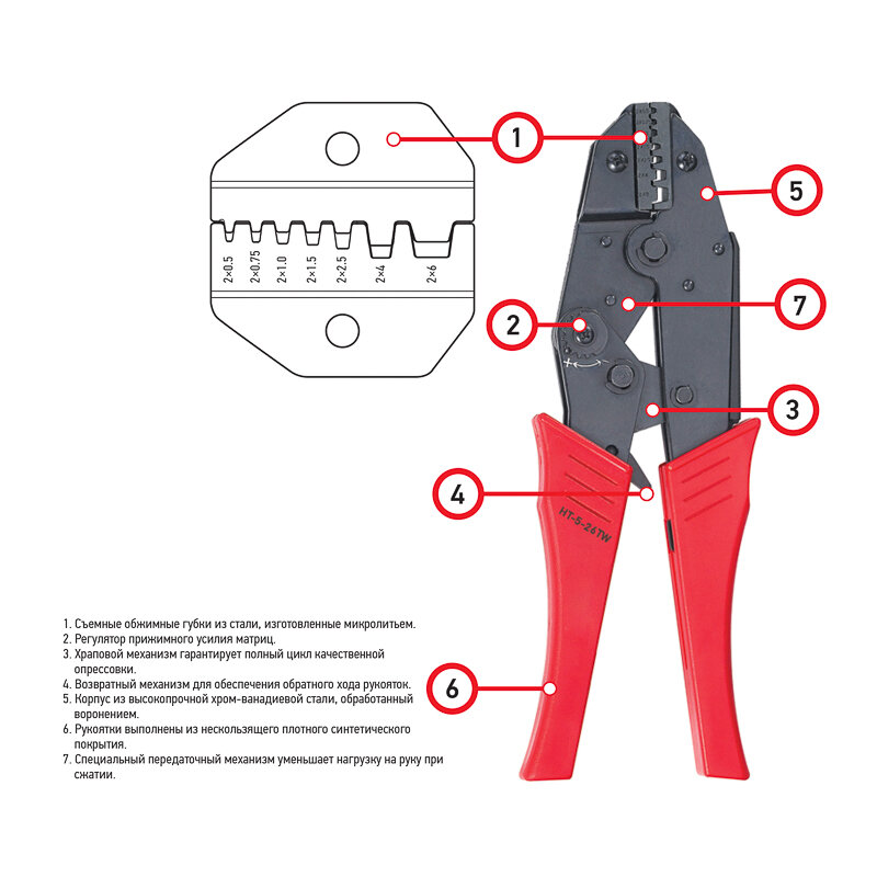 - Храповой механизм гарантирует полный цикл качественной опрессовки;