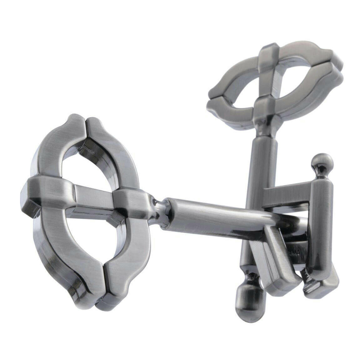 Усовершенствованная модель классической головоломки "Два Ключа". В головоломке Cast Key II уделено особое внимание стилю и точности. Новая версия головоломки оказалась более сложная. Цель головоломки: разъединить два ключа, а потом собрать их в исходное положение. На первый взгляд это просто, но на самом деле нужна небольшая хитрость. Начинающие игроки должны следить за тем, чтобы не прилагать чрезмерных усилий. Необходимо действовать исключительно силой логики, тренируя при этом пространственное воображение. Тема: Ключ. Автор идеи: Otake Wong. Оригинальное название: Huzzle Cast Key II**