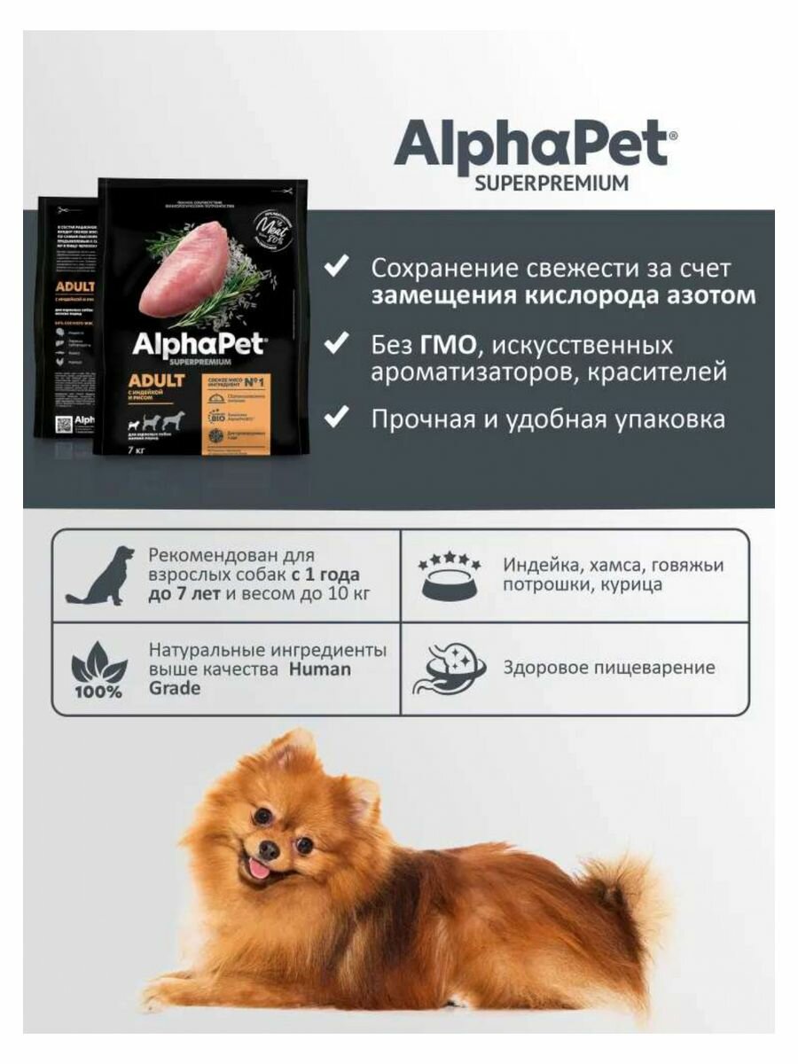 Сухой полнорационный корм с индейкой и рисом для взрослых собак мелких пород AlphaPet WOW Superpremium.