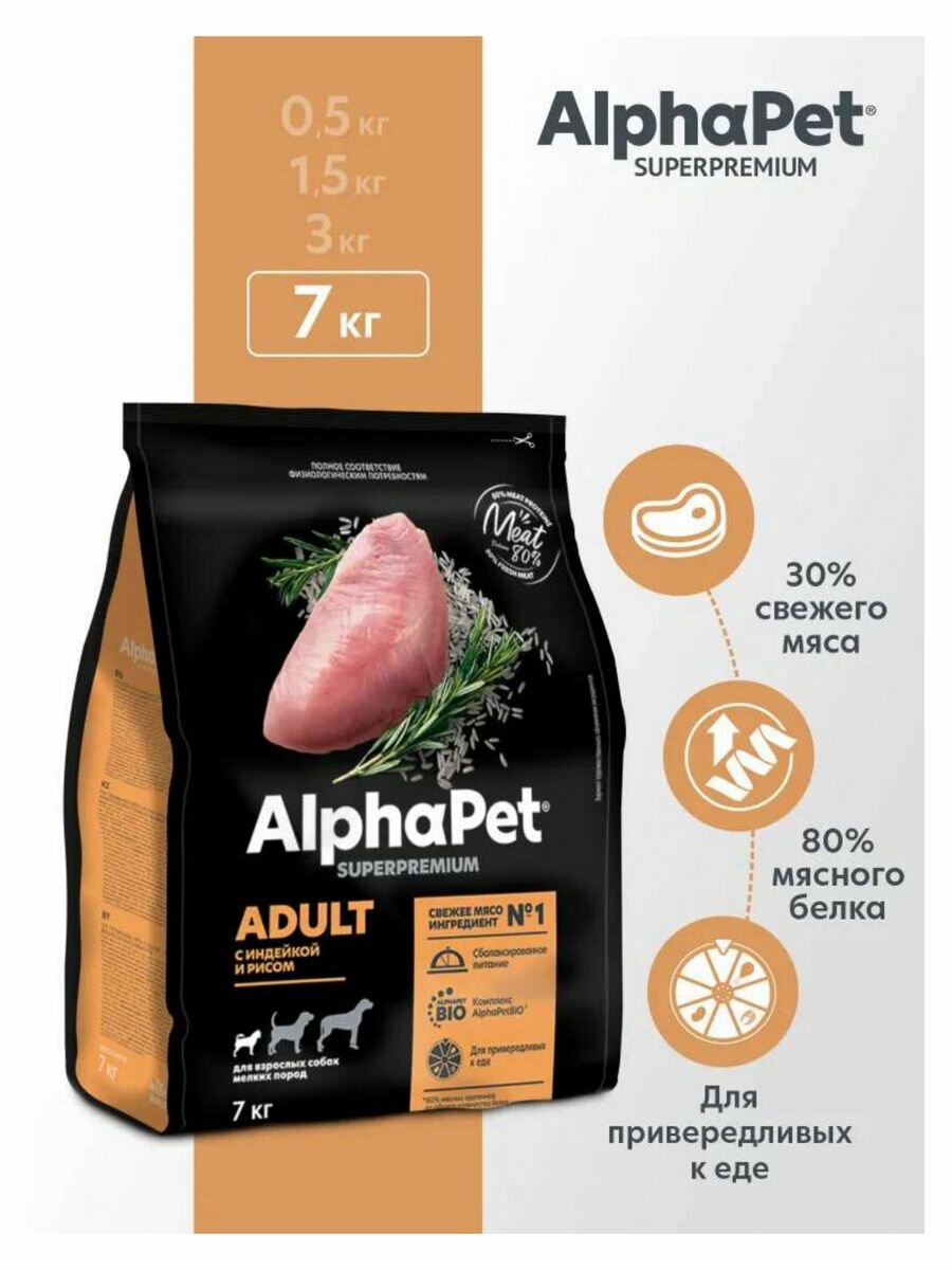 AlphaPet Сухой корм для собак мини пород с индейкой и рисом 15 кг