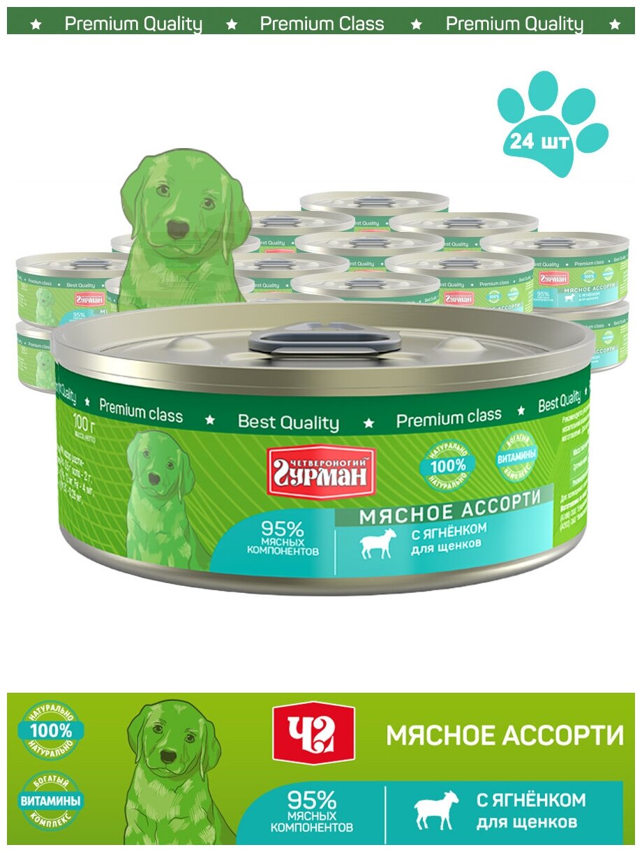 Четвероногий Гурман консервированный корм для щенков Мясное ассорти ягненок бн. 100г