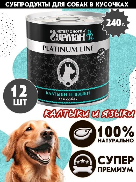 Четвероногий Гурман Platinum Line консервы для собак калтыки и языки в желе 240 г