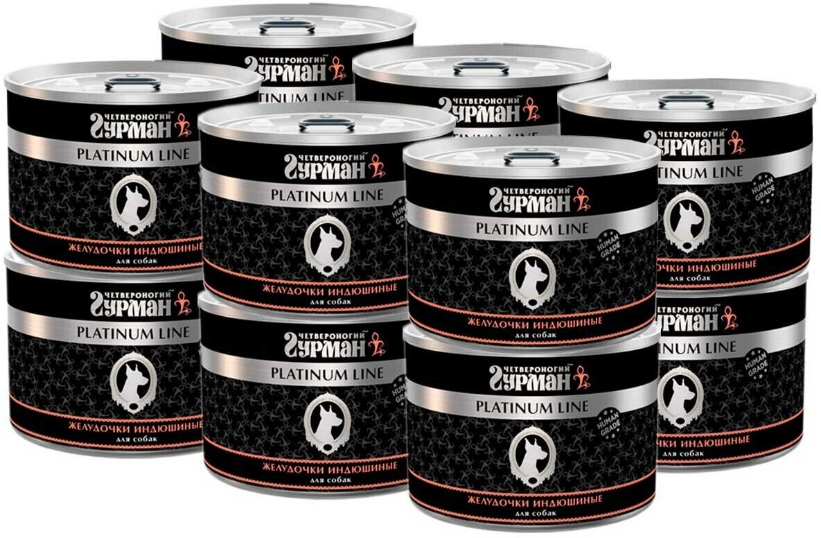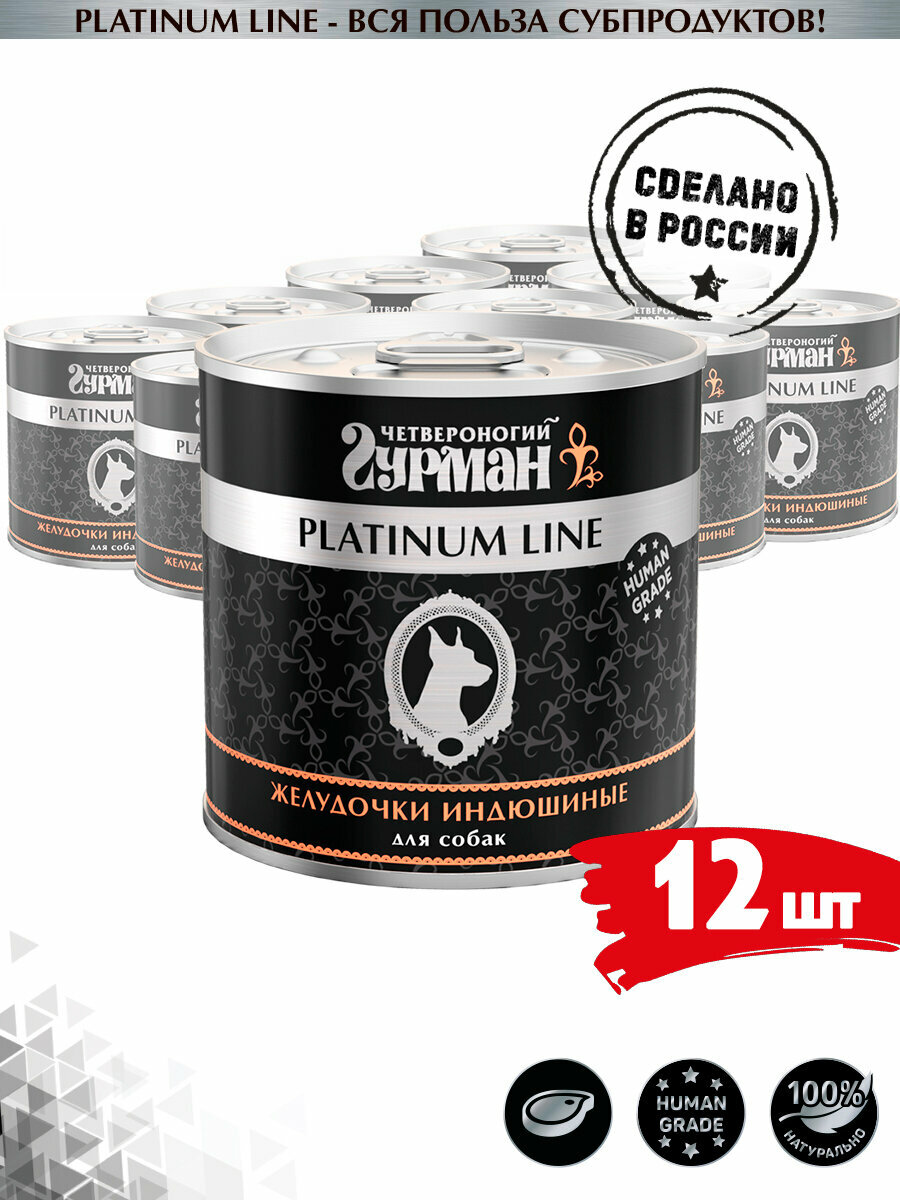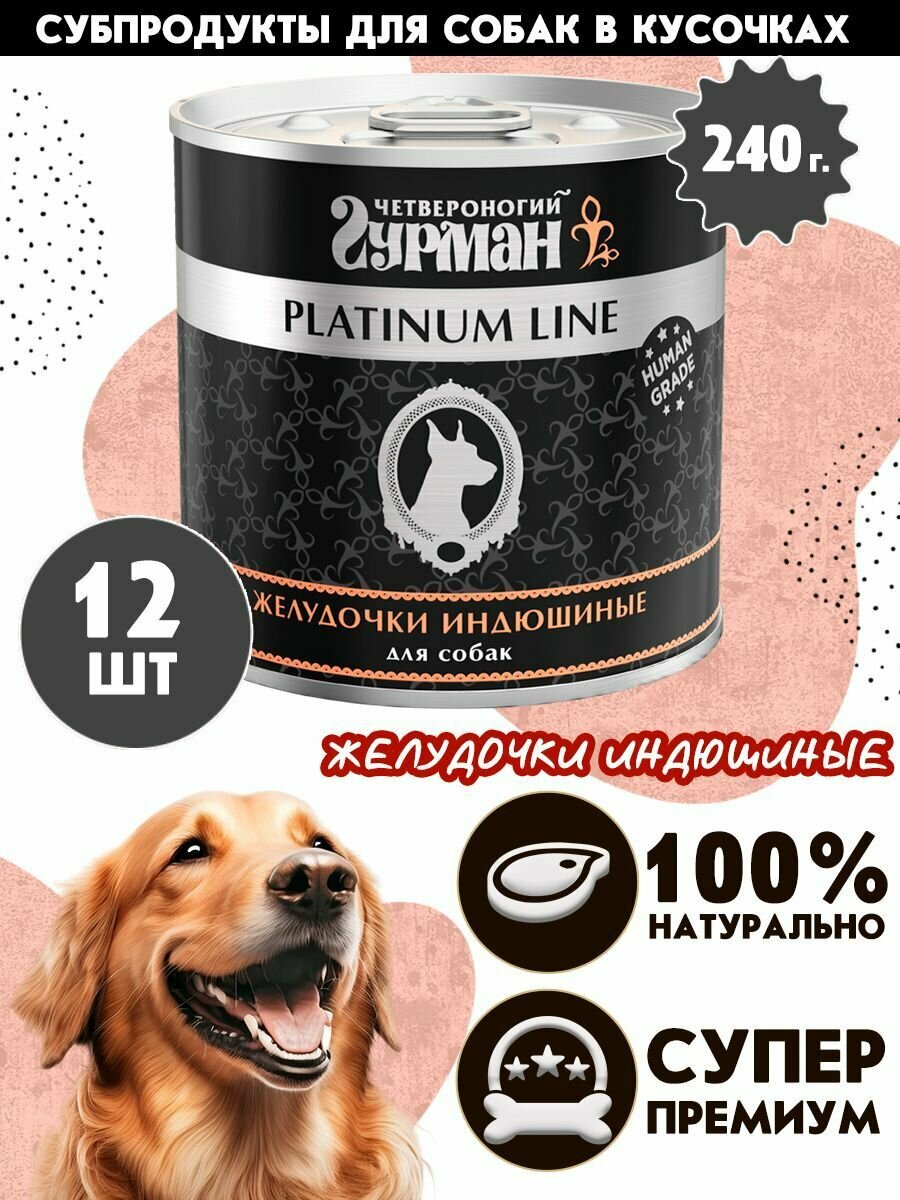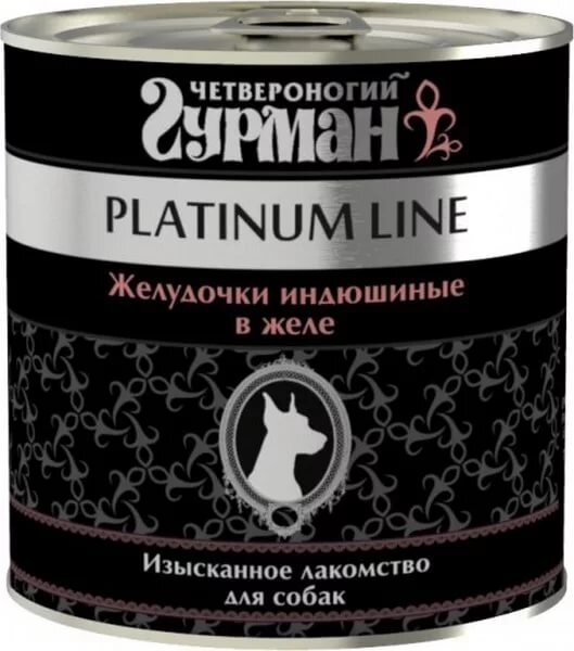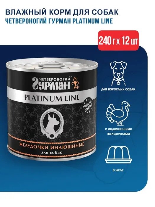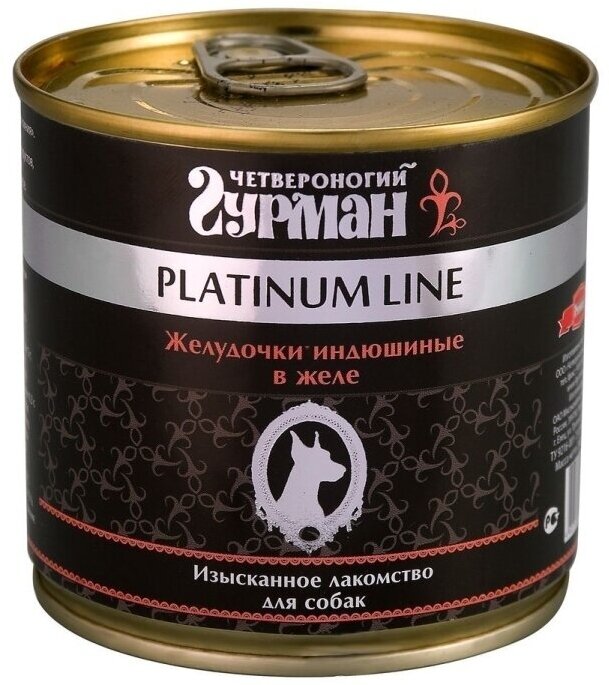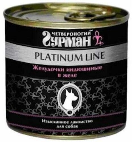 Четвероногий Гурман Platinum Line консервы для собак желудочки индюшиные в желе 240 г