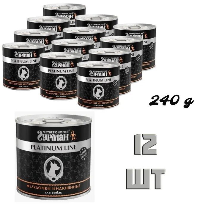 Сервис сравнения цен СкидкаГИД предлагает сравнить цены на товар «Четвероногий Гурман Platinum Line консервы для собак желудочки индюшиные в желе 240 г»
