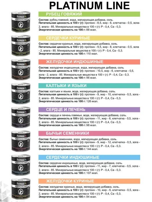 Четвероногий гурман “Platinum line” для собак – это деликатесное мясное лакомство суперпремиум класса. В каждой баночке содержатся цельные или крупно нарезанные субпродукты, которые так любят животные. Корм полностью натуральный – в его составе нет искусственных красителей, ароматизаторов, усилителей вкуса и ГМО. Подходит для собак всех пород, а также для питомцев, которым показана строгая или монобелковая диета.