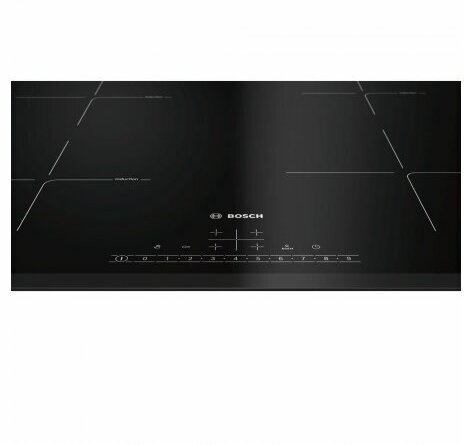 Индукционная варочная поверхность Bosch с независимым управлением оборудована четырьмя конфорками, одна из которых является экономичной, две стандартными и одна конфорка повышенной мощности. Благодаря функции PowerBoost (усиленный нагрев) можно ускорить приготовление блюда или процесс кипячения. Управление осуществляется с помощью сенсорной панели. Блокировку элементов управления удобно использовать при мытье варочной панели.