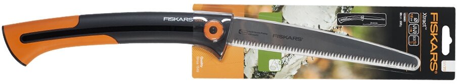 Выдвижные пилы Fiskars ™ являются замечательным дополнением для топоров серии Fiskars Xseries™. Пилы Fiskars ™ предназначены для распила и подрезки свежей древесины. Наличие выдвижного лезвия и клипсы для крепления на ремень делают пилу безопасной и комфортной как во время передвижения по саду с инструментом в руке, так и при работе. Узнаваемая оранжевая ручка из материала SoftGrip™ обеспечивает надежный захват.