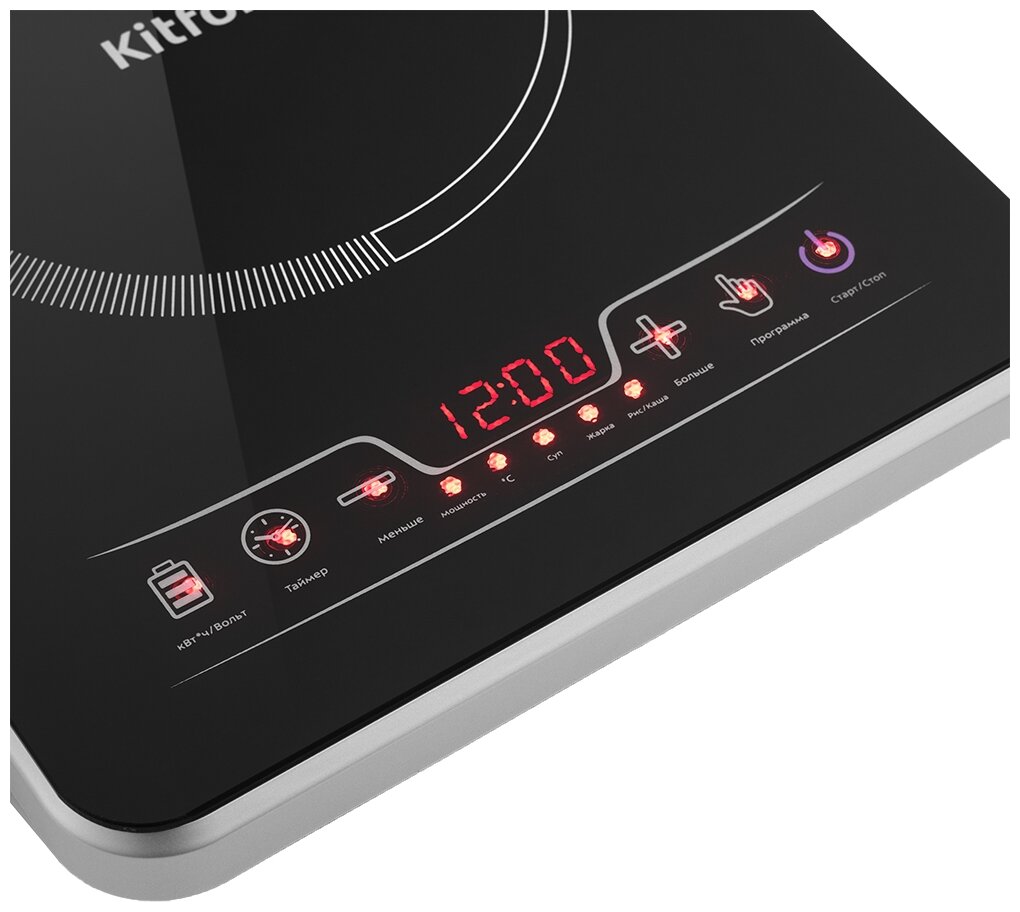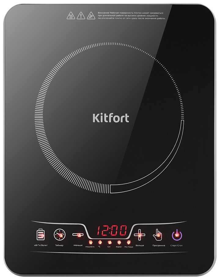 KITFORT КТ-102 — это удобная в использовании и экономичная индукционная плита для приготовления пищи. Данную модель отличает особенно лаконичный дизайн — индукционный нагревательный элемент и панель сенсорного управления находятся на одной рабочей поверхности.