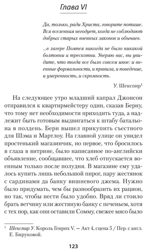 Читая современные издания о Первой мировой, я думаю: «Да что вы можете знать, вас там не было», а Мэннинг был. Его книга позволяет взглянуть на события той войны напрямую из окопов, прочитать, о чем говорили солдаты и в каких условиях они жили. Эмоции и чувства героям будоражили меня на протяжении всех глав. Ту реальность осознать и принять тяжело, люди, жившие тогда, вызывают лишь уважение, восхищение и сострадание. Наверное, тот факт, что сам автор был в разгаре битвы на Сомме, одной из самых кровопролитных на Западной фронте, вызывает безусловное доверие и ужас от пережитого автором.