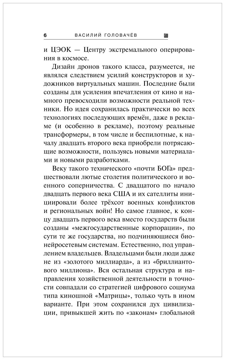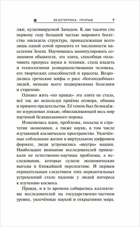 С творчеством В.В. Головачева я знаком достаточно давно. Среди многих циклов автора, цикл "Экзотеррика" является одним из самых "юных". Но несмотря на это, читать его одно удовольствие. Хотя Головачева и критикуют за шаблонность героев и политические нотки в текстах книг, не стоит забывать, что описания физики космоса, описание происходящих событий у мастера по прежнему на высоте. Произведения динамичны, героям сопереживаешь. Как правило всегда есть любовная линия. К счастью продолжения цикла не приходится очень долго ждать, но к сожалению книги кончаются за пару дней. Читается легко и поэтому очень быстро. Кому-то это нравится. В "Экзотеррику" Головачев добавил персонажей цикла "Контрразведка". Не скажу , что мне это понравилось. Наверное, не стоит сгонят супергероев в одну команду, это же не кинокомикс. Но автор так видит развитие сюжета. В любом случае цикл и конкретно данную его книгу я рекомендую.