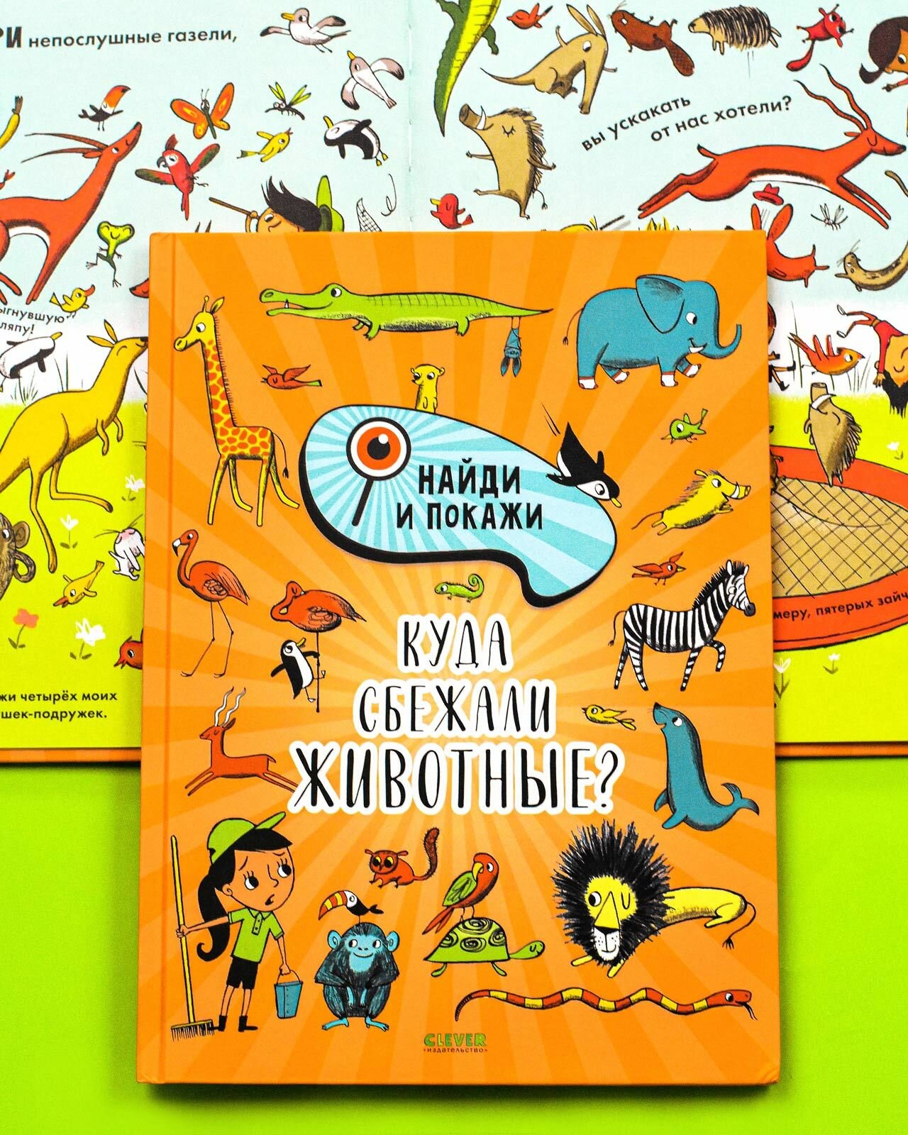 Книга «Найди и покажи. Куда сбежали животные?» увлечет ребенка надолго и подарит вам много интересных часов за совместным чтением и игрой.