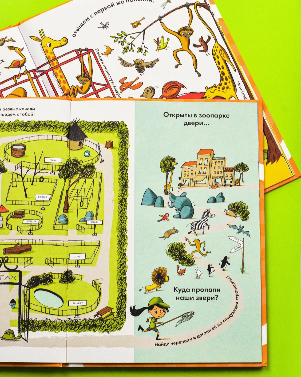 Ребенку предстоит не просто искать животных и предметы, но выполнить важную миссию — помочь смотрительнице зоопарка сосчитать всех сбежавших зверей. Нужно быть очень внимательным, чтобы отыскать пингвина, уснувшего под газетой, крокодила, который залез в трубу, серых слонов среди серых камней.