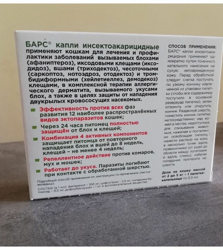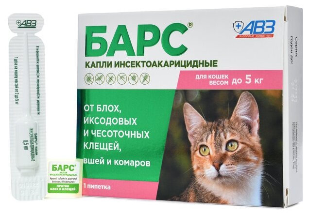 АВЗ БАРС капли инсектоакарицидные для кошек до 5 кг