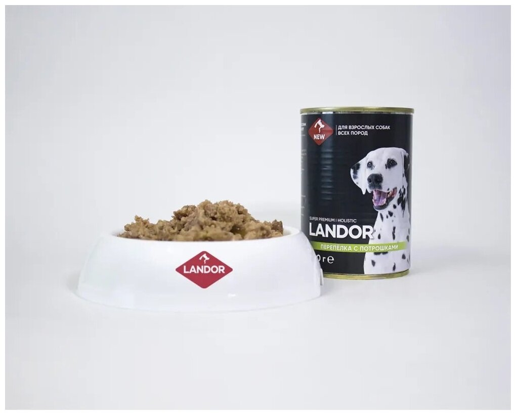 Влажный корм для собак Landor перепелка с потрошками 04 кг для взрослых собак всех пород с перепелкой и потрошками (400 гр)