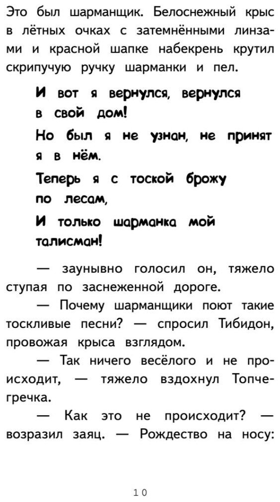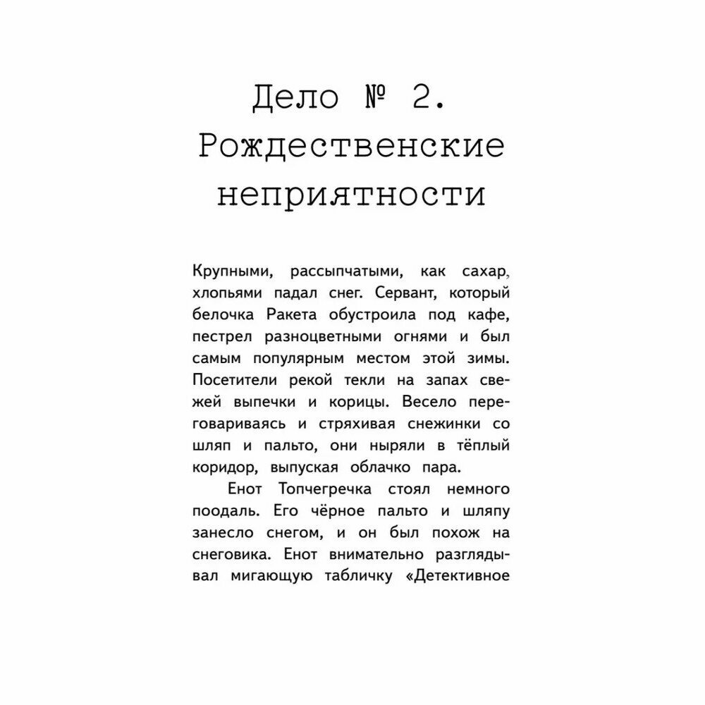 Прекрасный и нестандартный жанр для детской книги - детектив. Детективы всегда хороши тем, что заставляют мыслить логически, искать улики, высчитывать ходы, а в конце, по сценарию, зрителя или читателя обычно ждет непредвиденный поворот. Очень интересно сделать такое для детей. И так, у нас есть уже три почетных детектива еще с прошлой книги этой же идеи - Топчегречка, Тибидон и Ракета, которые оберегают город и с легкостью раскрывают дела. Не совсем поняла из аннотации, почему они рады чужакам и усложненным расследованиям преступлений, но ладно. Автор заявляет, что эта книга для самостоятельного чтения, а для этого нужен действительно захватывающий сюжет, и, поверьте, мой племянник читает ее уже несколько дней подряд. Сама книга напечатана хорошим крупным шрифтом. Иллюстрации редкие и черно белые, поэтому причина интереса точно не в картинках. Возможно прочтение не получится с первого раза, тем более если книга одна из первых самостоятельных. В ней много прямой речи и самих персонажей, кроме того жанр позволяет быть запутанным, стоит читать не торопясь. Не смотря на то, что события разворачиваются в канун Рождества, книга не носит определенного новогоднего настроения, поэтому для такого подарка ждать Нового года не нужно, как обычно бывает с Новогодними книжками.