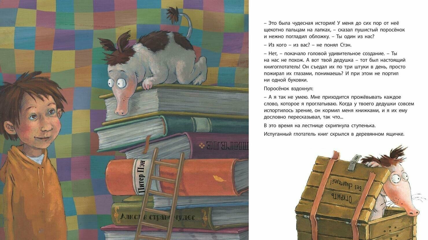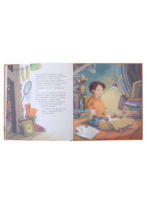 Дедушка оставляет на память внуку свою библиотеку и таинственный ящик с надписью "Только для Стэна". Что в нём спрятано? Может быть, пиратская карта или золотые монеты? Нет, в ящике оказалось удивительное существо!.. Добрая история замечательной сказочницы Корнелии Функе - о целом мире, спрятанном под книжными обложками…