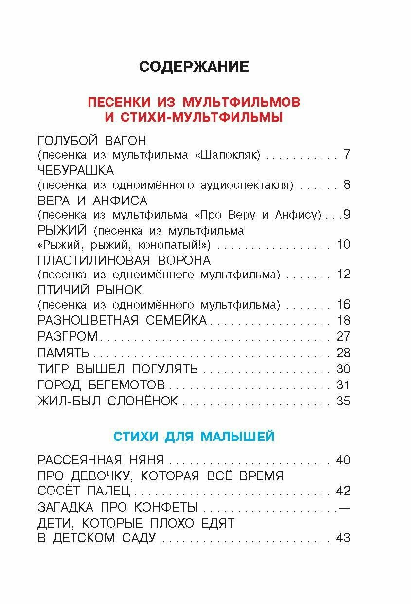 Потрясающая книга с потрясающими стихами-песенками из советских мультфильмов. Читаю, и сразу всплывает мелодия. замечательные иллюстрации Игоря Глазова. Стихи остроумные и очень озорные. Очень люблю стихотворение "Разгром" - перед глазами мультик с появляющимся из стиральной машины Сережкой.