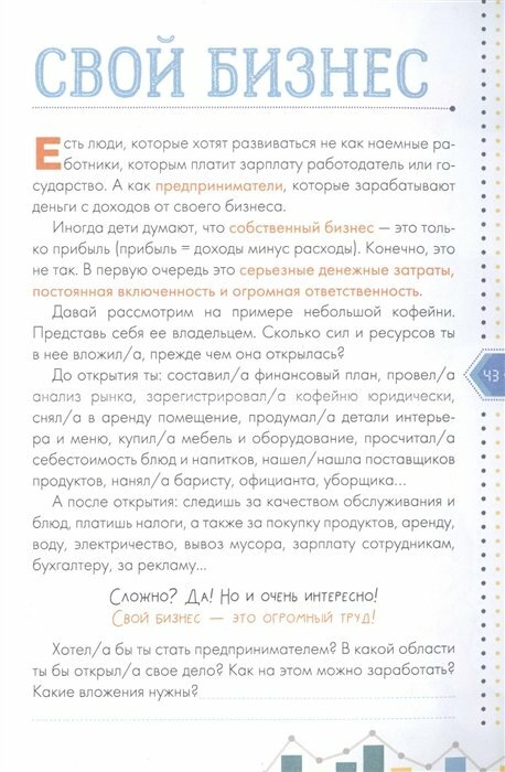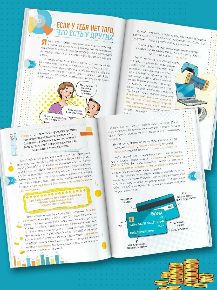 Для прочтения книга понятная. Мне понравилось то, что помимо советов, как тратить и копить(понятным языком для детей), из этой книги дочь почерпнула много новой полезной информации. Например об истории денег и налогах. Эти знания не лишние для современных школьников. В книге много картинок. Покупкой мы остались довольны. -