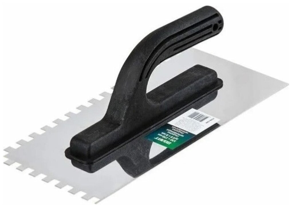 Гладилка зубчатая нержавеющая волат 130 х 270 мм зуб 10 х 10 мм () из нержавеющей стали с пластиковой ручкой предназначена для разравнивания строительной или клеевой смеси. Полотно с зубьями 10х10 мм изготовлено из нержавеющей стали, стойкой к возникновению коррозии. Инструмент обладает удобной для удержания рукояткой. Толщина металла, мм: 0,8. Материал рукоятки: полипропилен.