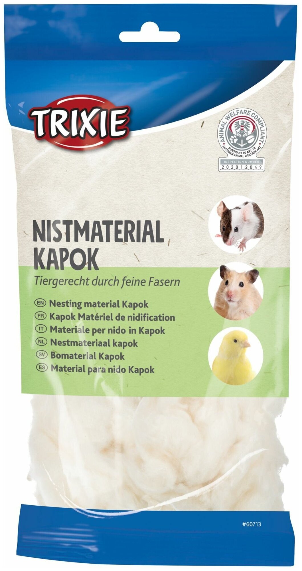 Материал для гнезд безопасен для животных. Тонкие, легко отделяемые волокна позволятму питомцу создать теплое и мягкое гнездышко. Подходит для птиц и грызунов.