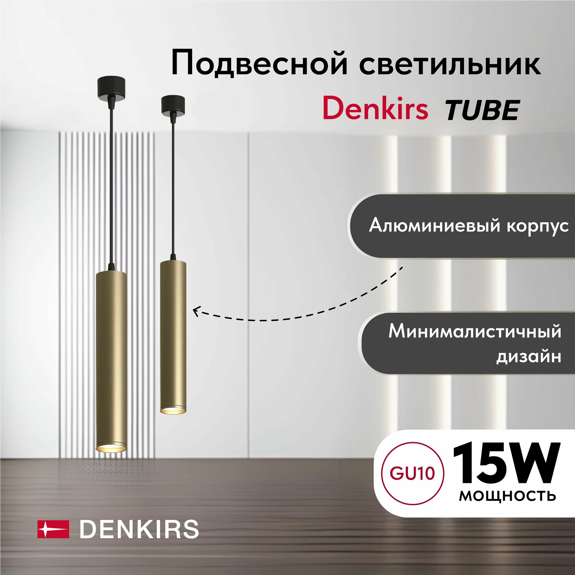 Точечные светильники Denkirs серии TUBE. Подчеркнет стиль помещения. Высота 1.8 m. Диаметр 0.1 m Параметры пылевлагозащиты IP — 20. Плафон алюминевый золотистый, а материал/цвет арматуры пластик/черный. Использует лампу с цоколем GU10. Идеально подходит для гостиной, для спальни, для офиса, для прихожей. Страна происхождения бренда — ДАНИЯ.