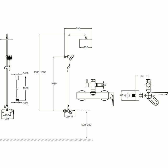 | Габариты верхнего душа | 250 |