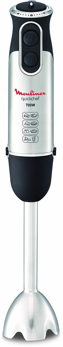 Надежный погружной блендер Moulinex гармонично сочетает в себе великолепный дизайн и современные технологии. Прибор оснащен мощным мотором 800 Вт, имеет плавную регулировку скоростей с эффектной подсветкой, а также дополнительную кнопку турборежима, благодаря чему позволяет быстро и эффективно измельчать и смешивать различные ингредиенты. Эргономичная ручка блендера с мягким противоскользящим покрытием и большими удобными кнопками гарантирует максимальный комфорт в использовании