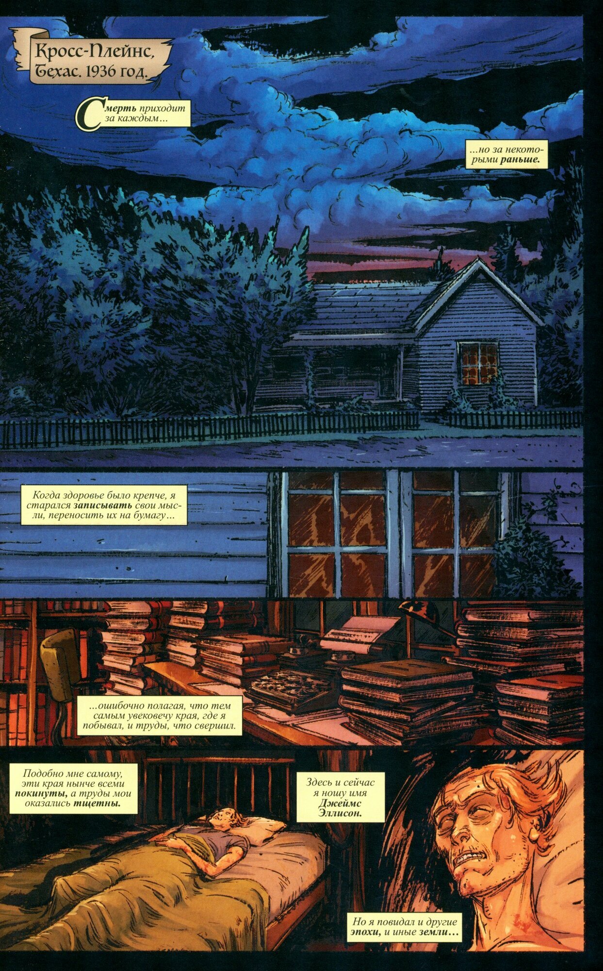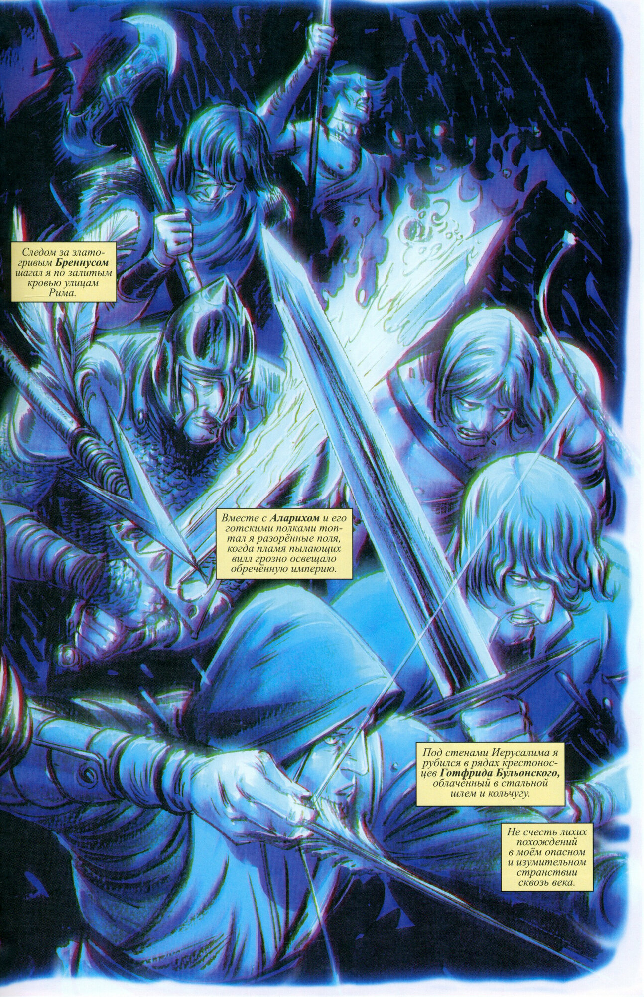 Довольно приятная находка для читателей комиксов. Невероятная коллаборация достаточно известных персонажей, включая Лунного рыцаря, который по началу вроде бы и кажется лишним в данной команде, но нет, появление всех героев, которые в принципе не могут существовать в одном времени и вселенной, достаточно логично объяснено и вплетено в канву повествования. Читать данный комикс не совсем просто, мне показалось, что слова иногда не цепляются друг за друга, однако кто сказал, что чтение должно быть лёгким, тем более сюжет ведёт нас по разным эпохам, что весьма интересно. Рисунок с каждым выпуском становится хуже и хуже, за это обидно, однако в яму он полностью не скатился, спасибо за то, что комикс вовремя закончился. Схватки напоминают глобалки от Марвел или DC, однако здесь достаточно непривычные персонажи, и некоторых чтоб узнать нужно погуглить, но до чего же хорош Соломон Кейн... Рекомендую ознакомиться с этим комиксом всем тем, кому наскучили попсовые Книжки с Картинками и тем, кому известны имена Конан, Тёмная Агнес, Лунный рыцарь, Соломон Кейн, Кулл завоеватель. Бонусом идут альтернативные обложки и самое прекрасное, довольно любопытный рассказ про Соломона Кейна на несколько страниц, именно рассказ, который читать очень интересно. Чтива весьма достаточно, несмотря на 132 страницы.