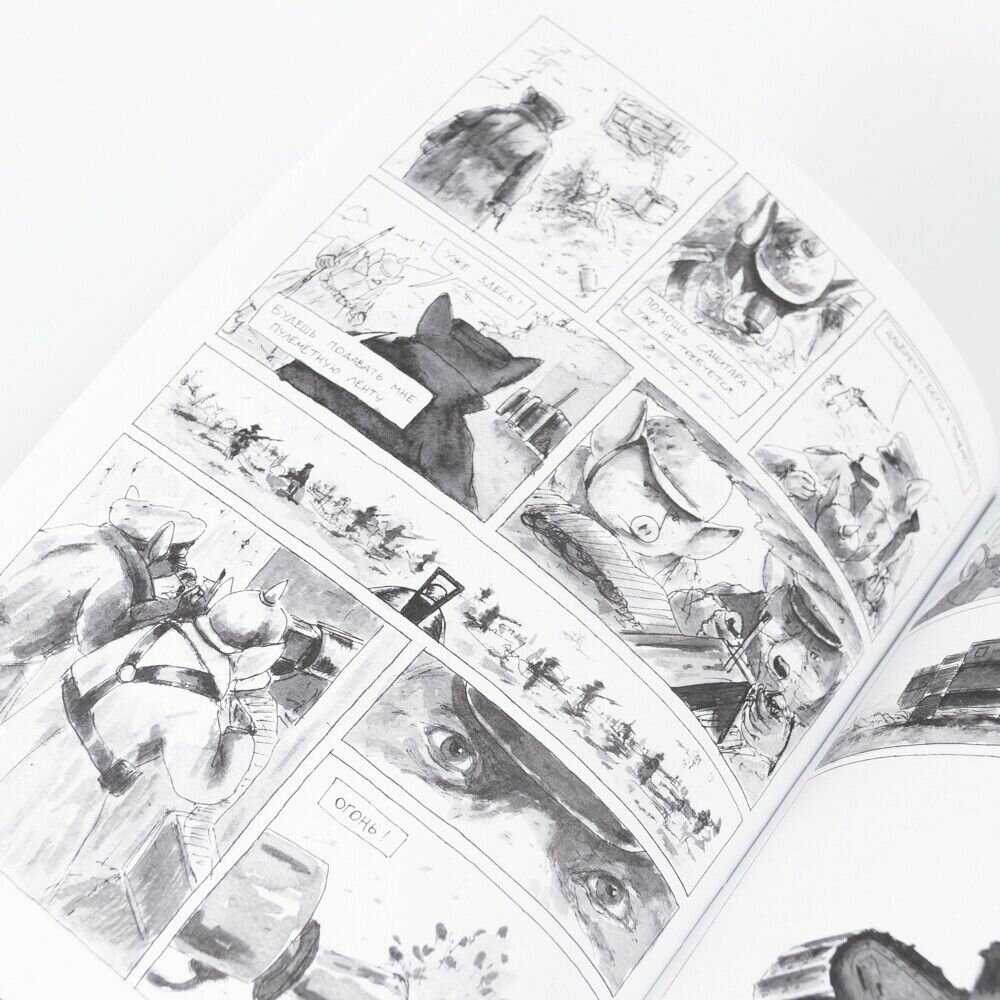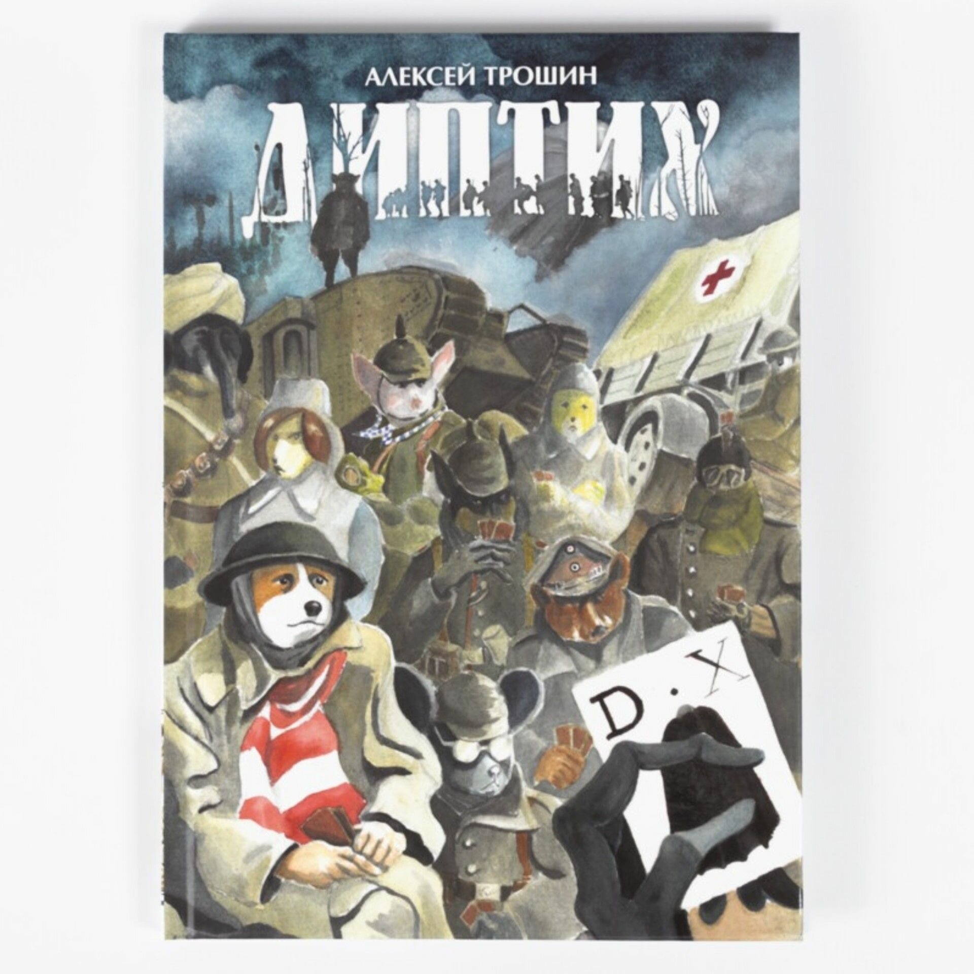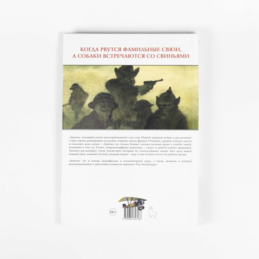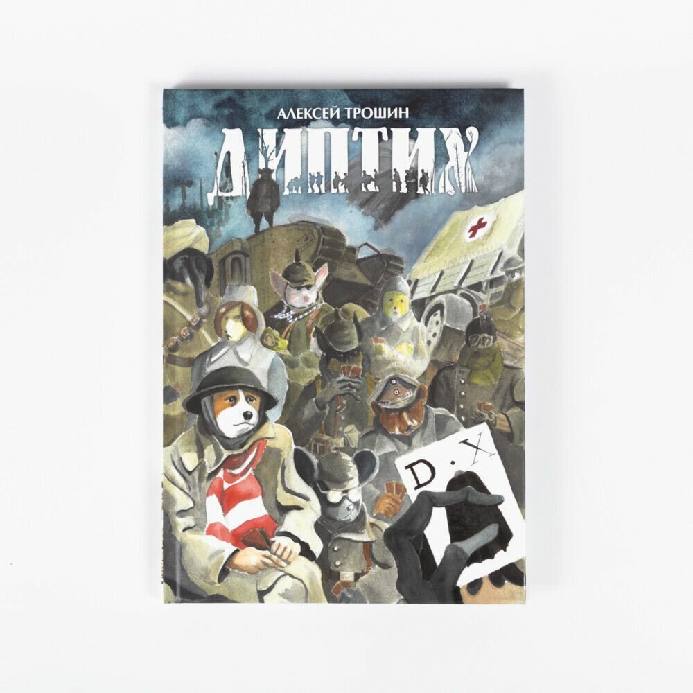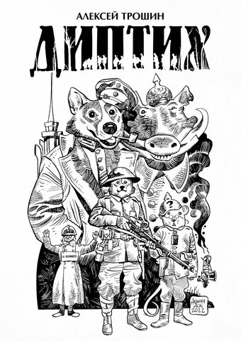 «Диптих» посвящен почти невостребованной у нас теме Первой мировой войны и рассказывает о двух героях, разведенных по разные стороны линии фронта. Отчаяние, дружба, поиски смысла и спасения, воля случая - «Диптих» не столько боевик, сколько военная драма о судьбах людей, попавших в этот ад. Точнее, антропоморфных животных - следуя за давней комикс-традицией, Трошин рассказывает очень человечную историю без использования людей. Зато здесь важен каждый цвет, каждый оттенок, каждый штрих - ведь в них вложен почти год работы автора.