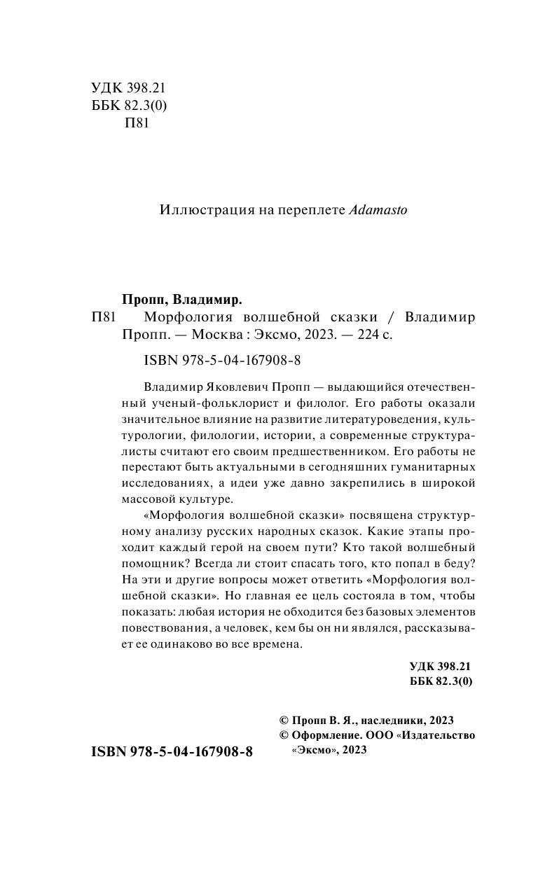 Морфология волшебной сказки (Пропп Владимир Яковлевич); ООО "Издательство "Эксмо", 2022
