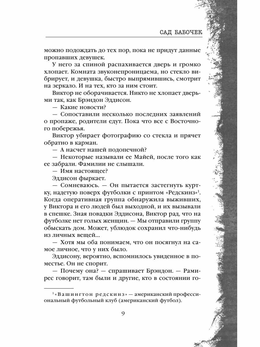 Роман «Сад бабочек», вышедший в США в 2016 году, буквально взорвал рейтинги «Амазона», уверенно и надолго став бестселлером №1 этого крупнейшего книжного рынка. Читателям стало ясно: на небосклон остросюжетной литературы взошла новая звезда, по своему таланту сравнимая с такими мастерами жанра, как Томас Харрис, Джон Фаулз и Дэвид Болдаччи…