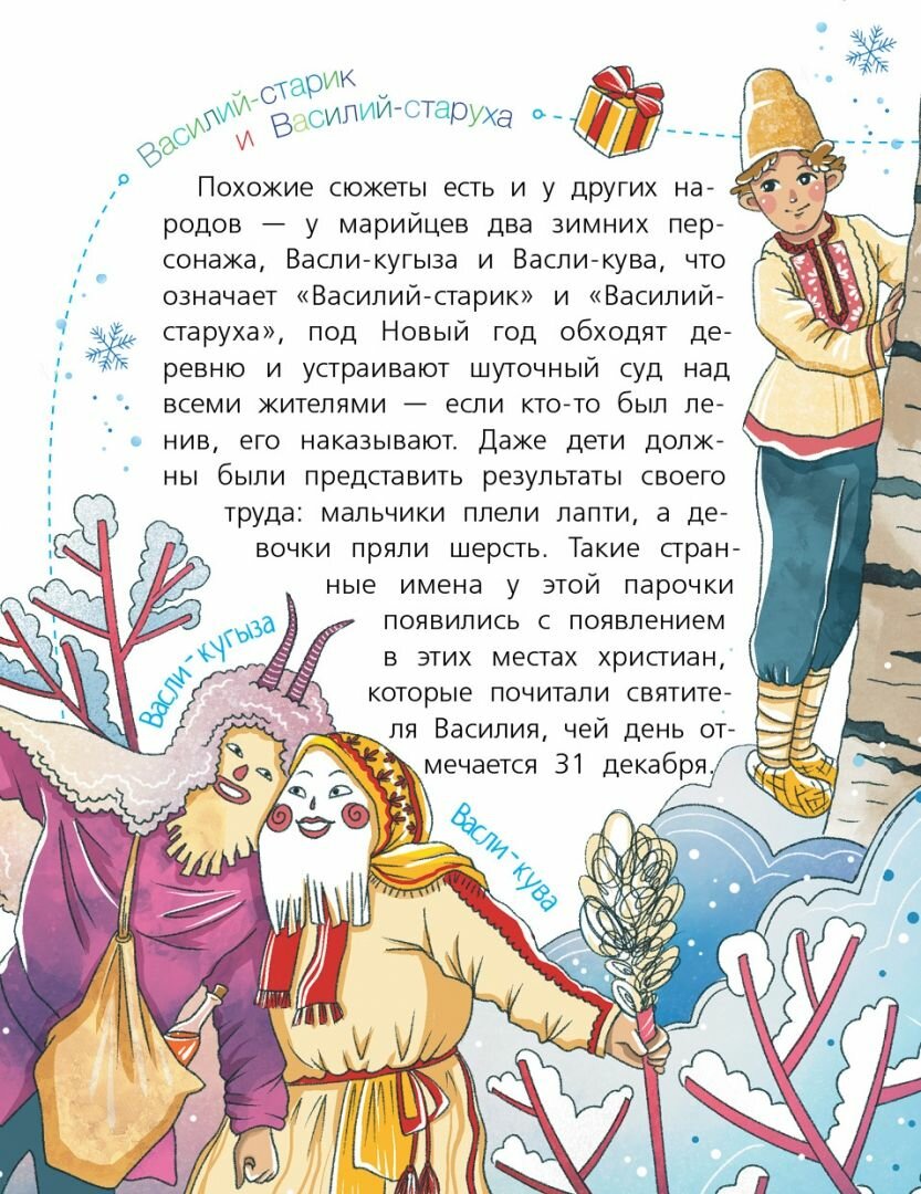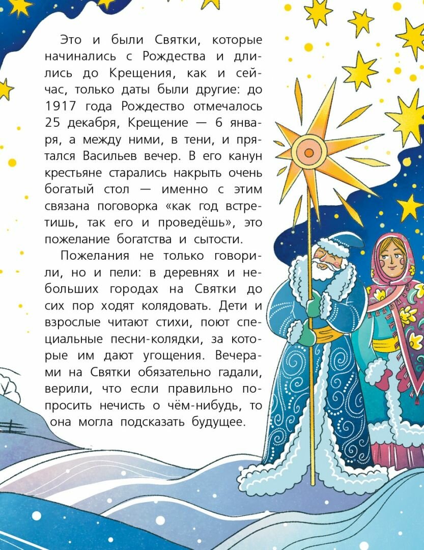 Книжка замечательная! Несмотря на то, что она для младшего школьного возраста, была интересна даже взрослым. Если по содержанию, то про многие обычаи разных народов России я и сама не знала, было интересно. Написано кратко и не сложно. В книгу включены основные традиционные праздненства зимы, весны, лета и осени в разных уголках нашей страны.
