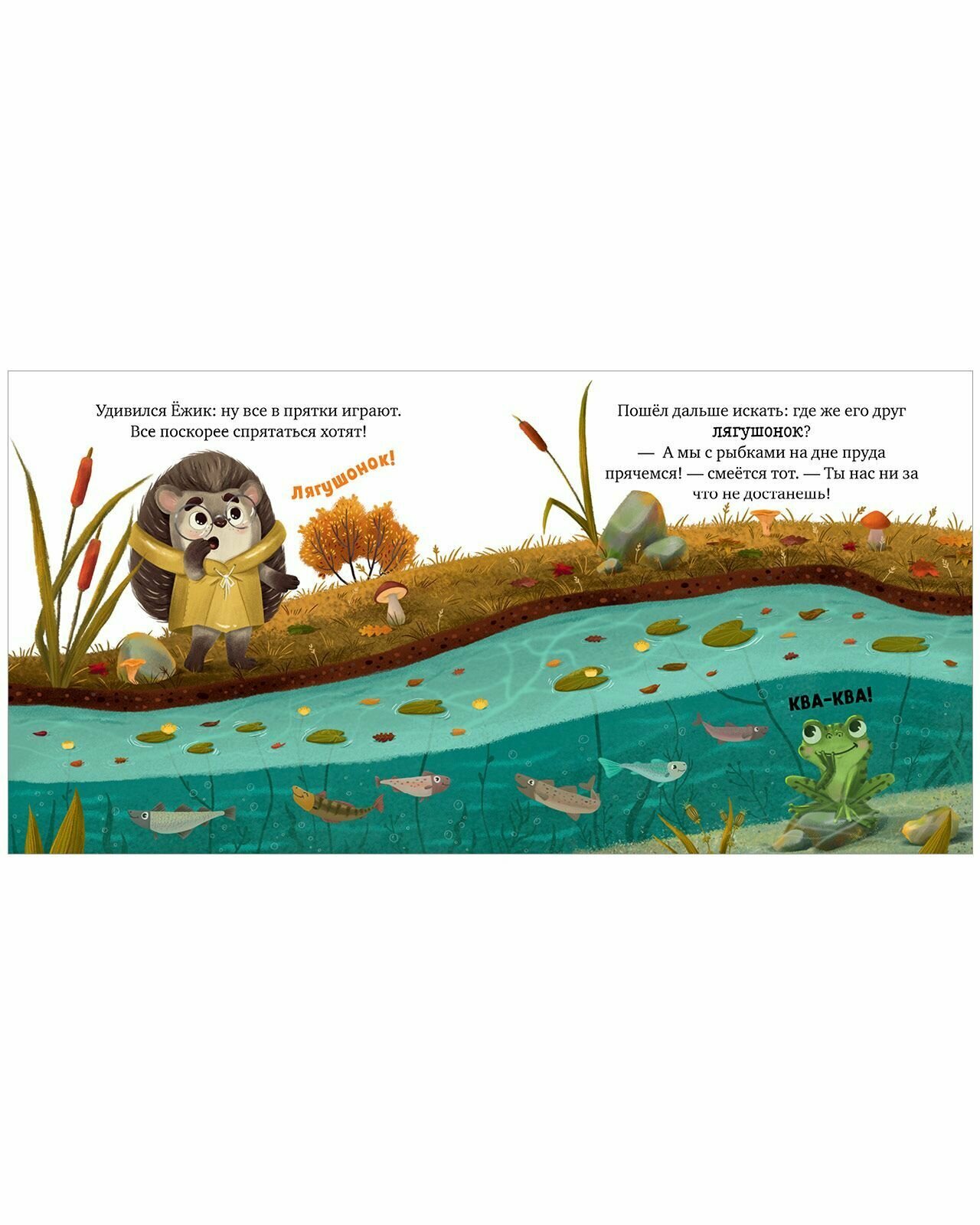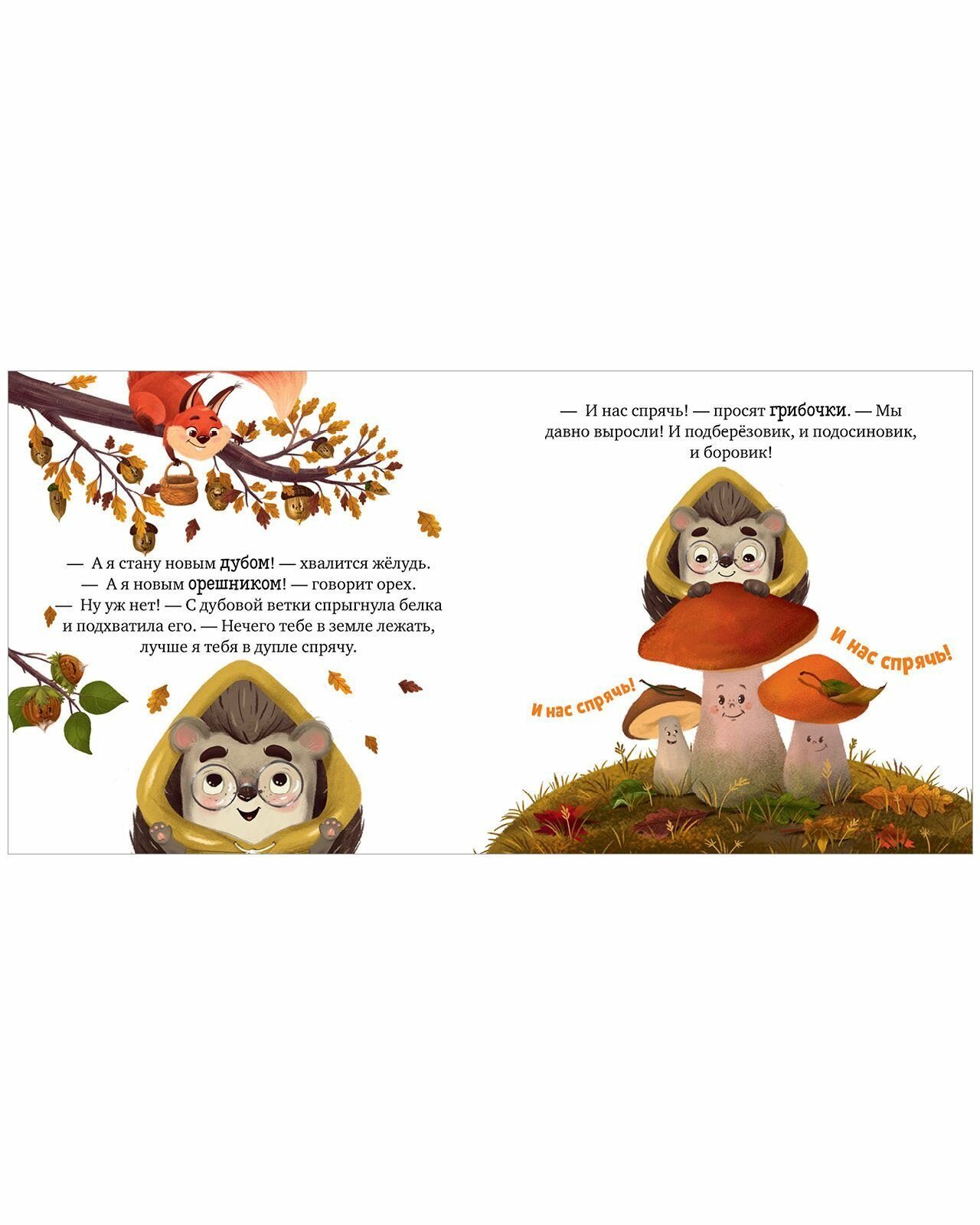 Книжка-картинка «Ежик и золотая осень» с невероятно уютными иллюстрациями и полезной сказкой расскажет малышу об отличительных приметах осени, о том, что происходит в природе в это время и как лесные жители готовятся к холодам.