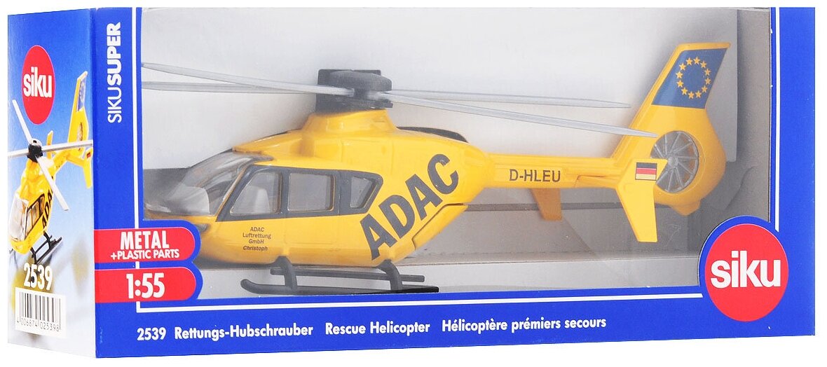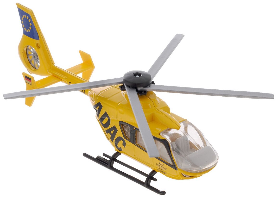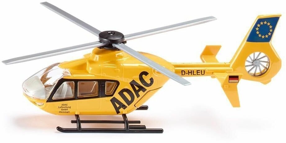 Вертолет Adac от бренда Siku может стать отличной игрушкой для любого ребенка или коллекционной моделью спецтехники. Игрушка состоит из металлического каркаса и пластикового корпуса. Задние дверцы вертолета открываются, и оттуда появляются носилки.