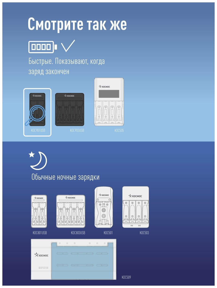 Зарядное устройство для аккумуляторов Космос KOC901USB