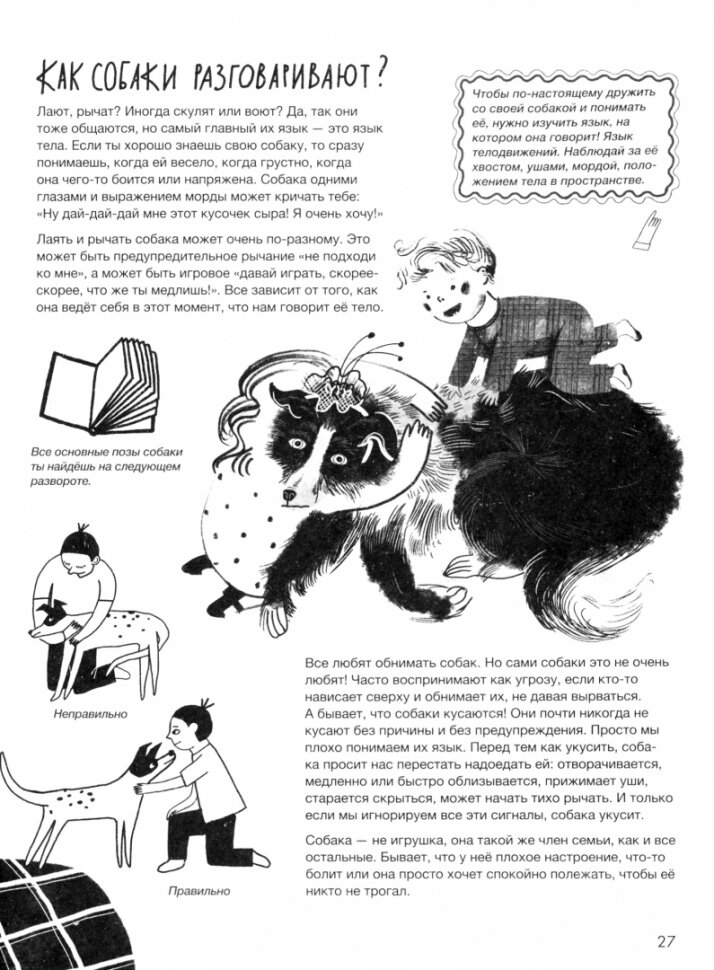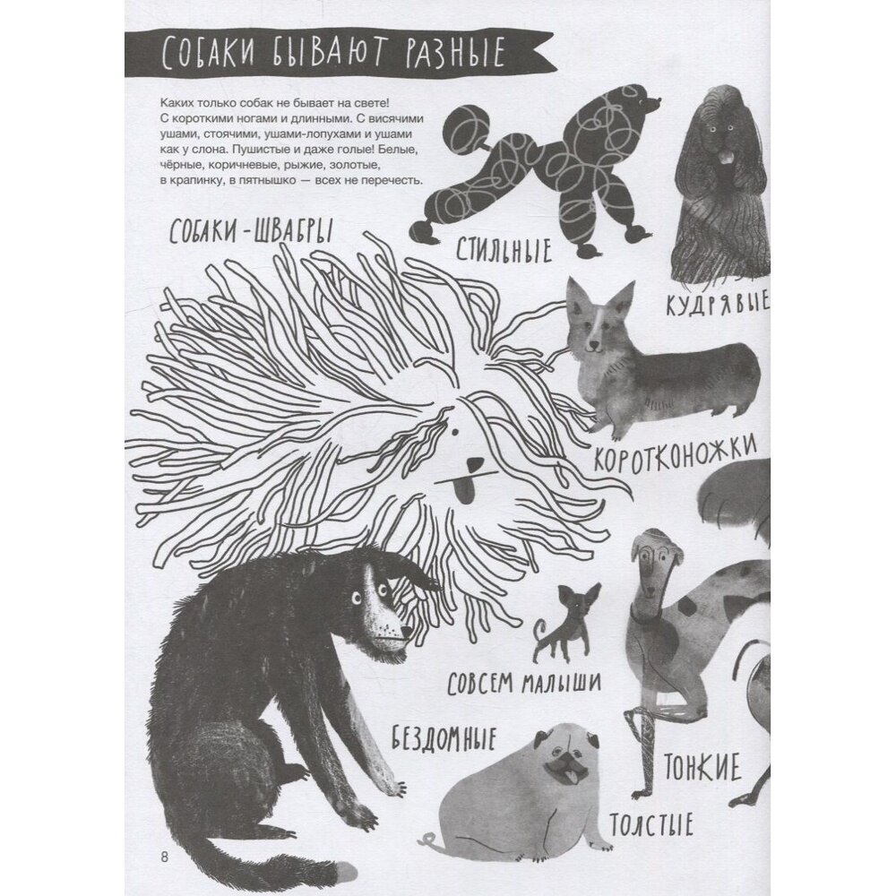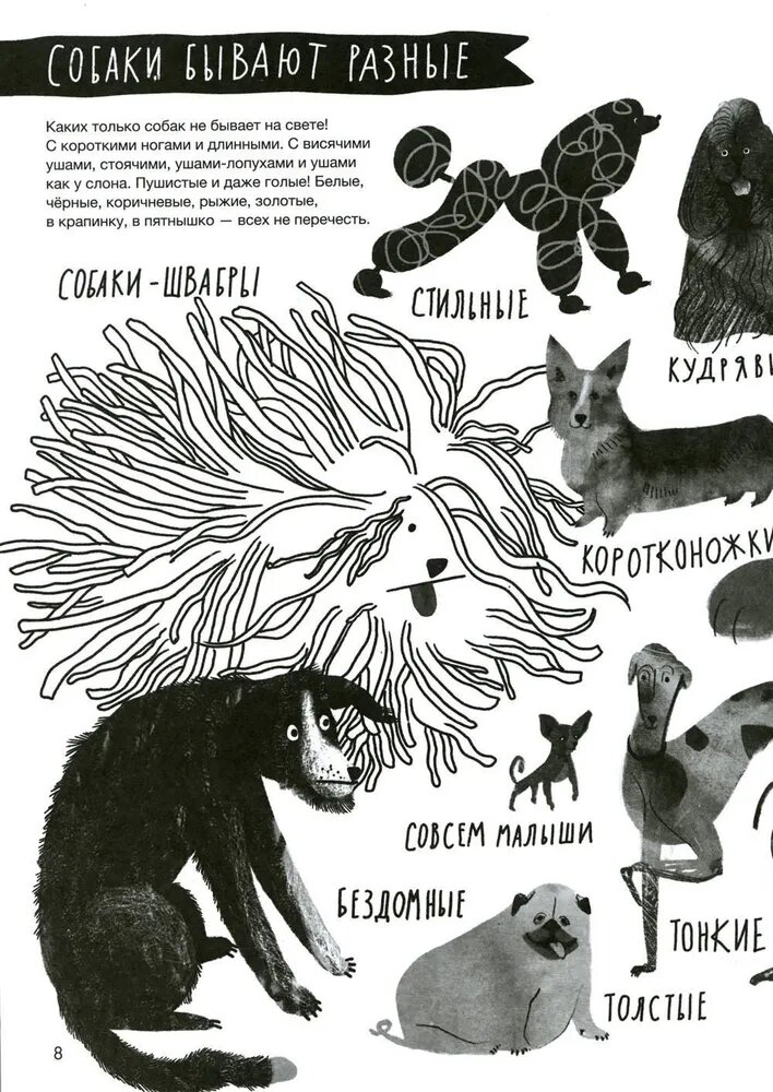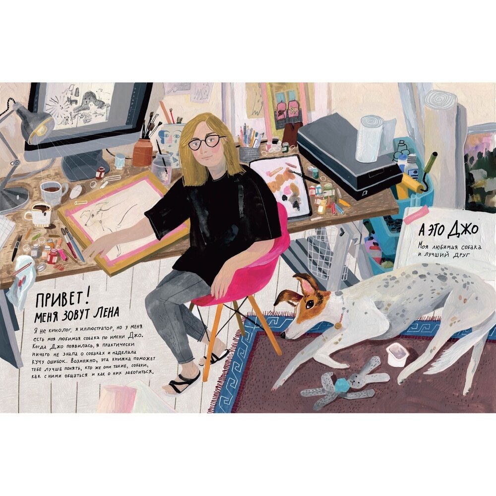 Как же я люблю такие детские энциклопедии! Невероятно красивая, стильная, интересная, живая! Не просто сухие факты, но личная история встречи с собакой из приюта + советы по уходу и просто всякие полезные штуки.