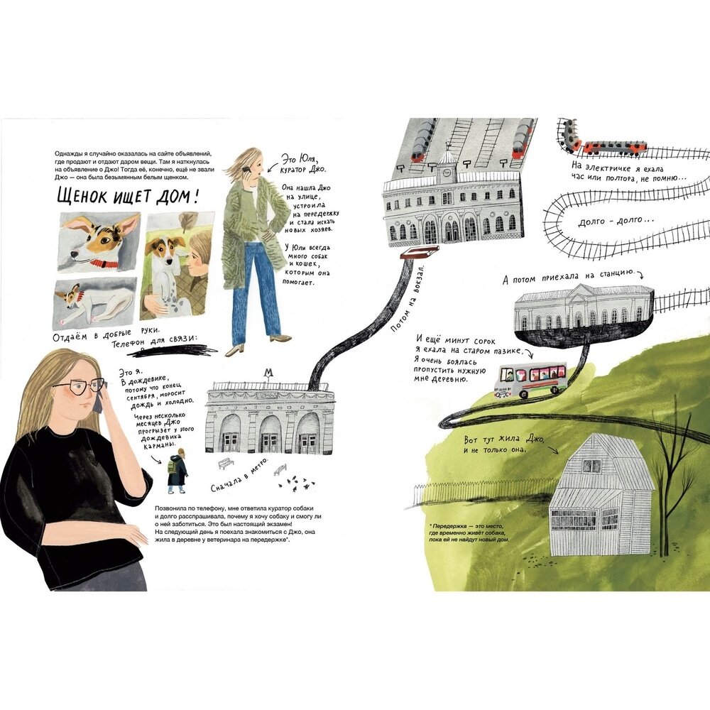 Сыну (10 л) очень понравилась эта книга, из новинок он утащил ее первой. Я тоже получила огромное удовольствие от чтения. Лена Булай рассказывает, как она забрала собаку из приюта, как ее воспитывала, как Джо хулиганила и потом остепенилась, как болела и чего боялась. Много милых и забавных ситуаций, написанных текстом или нарисованных.