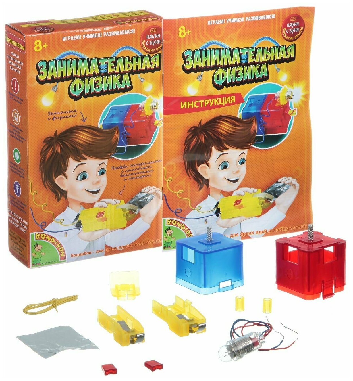 Все дети отличаются особым любопытством, постоянно задавая вопросы взрослым о причине или устройстве того или иного предмета или явления. Многое с этой точки зрения объясняет такая наука как физика. Один из самых ее интересных разделов - электричество. Чтобы помочь объяснить малышу, что это такое, откуда оно берется и как работает, производители Bondibon создали специальный набор "Занимательная физика" из серии "Науки с Буки" .