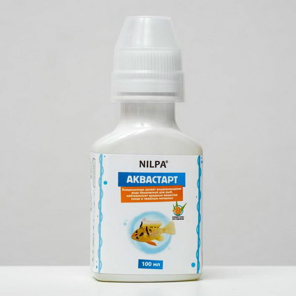 "Аквастарт", 100 мл - кондиционер делает водопроводную воду безопасной для рыб, нейтрализует вредные вещества.