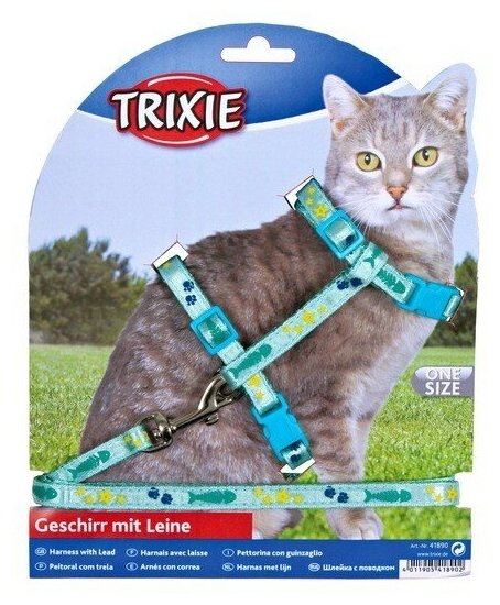 Сервис сравнения цен СкидкаГИД предлагает сравнить цены на товар «Trixie Шлейка с поводком для кошки с рисунком нейлон 22–36 см/10 мм 12 м»