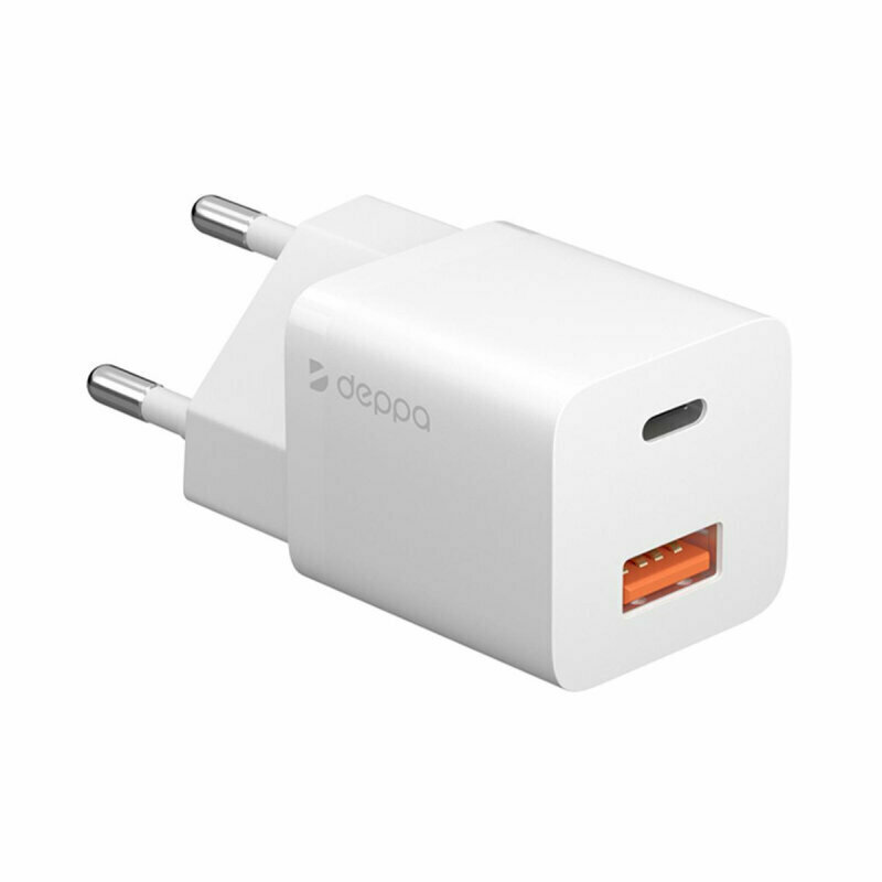 Сетевое зарядное устройство Deppa USB-C + USB-A, PD 3.0, QC 3.0, GaN, 20 Вт белый