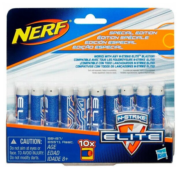 Hasbro Nerf B5571 - это набор состоящий из 10 патронов, который станет настоящей находкой для всех владельцев бластеров линейки Nerf Elite, он значительно пополнит имеющийся запас патронов, которые буду как нельзя к стати в самых серьезных боевых сражениях. Патроны облают уникальным дизайном, что позволяет легко и быстро отличить их от боеприпасов противника.