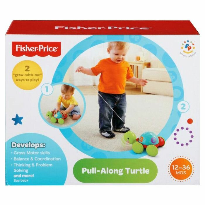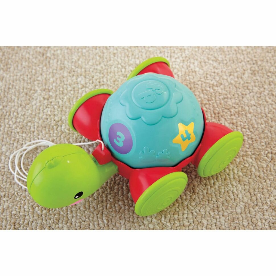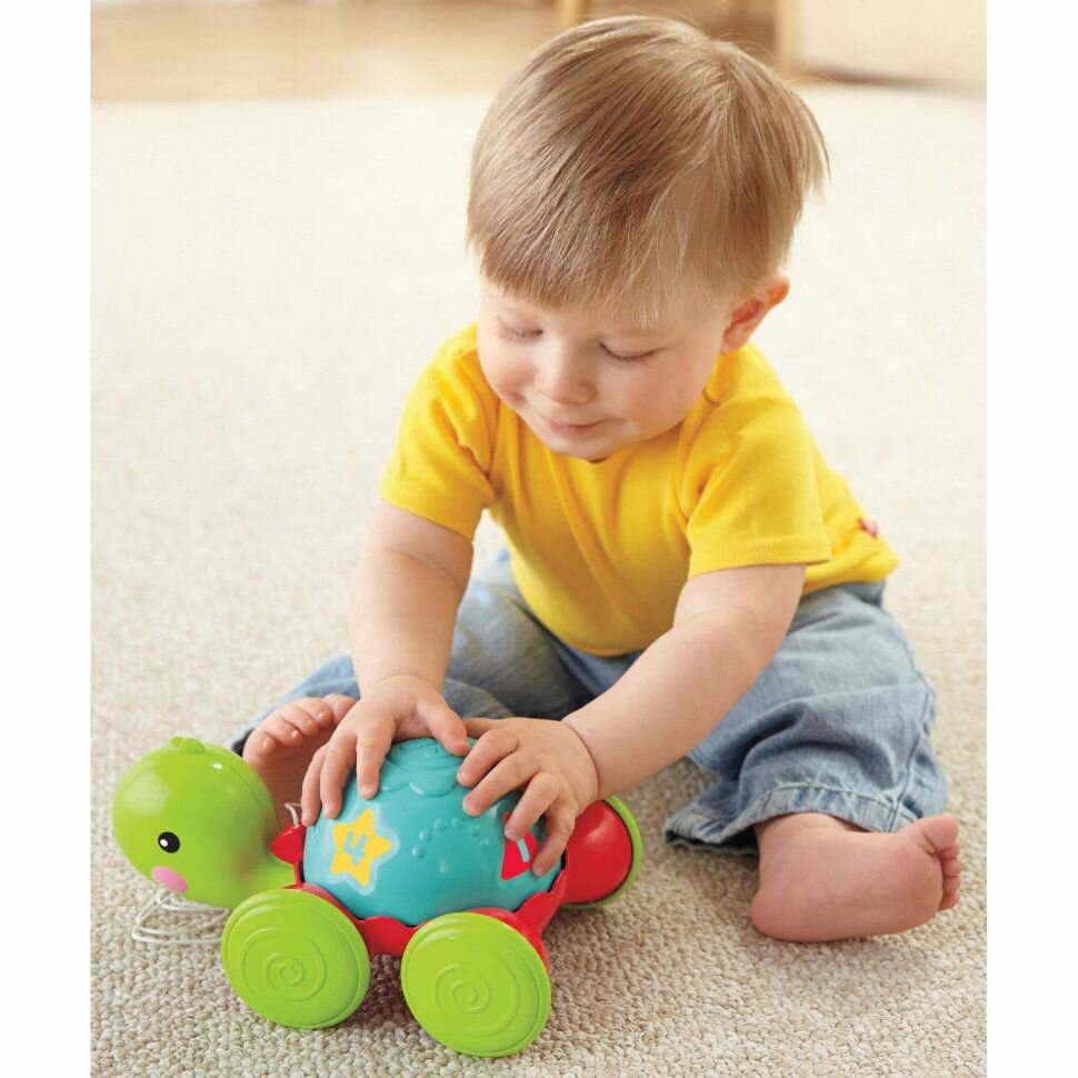 Полезная для развития деток веселая и привлекательная игрушка. Моя полуторагодовалая дочурка это Ученую черепашку от Fisher-Price обожает с первого знакомства. Во дворе она ее в основном за веревочку тянет, нравиться ей как она все время по дороге кивает. А дома крутит панцирь, показывает на циферки и начинает их называть. Сначала мы ей говорили, какая цифра на рисунке, теперь она нам сообщает. У игрушки довольно высокого качества как материал, так само изготовление. Хорошо моется.