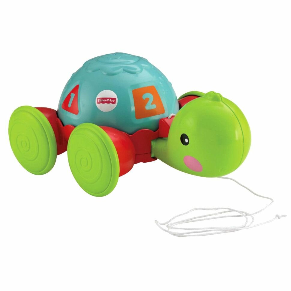 Каталка "Черепашка" на веревочке Fisher-Price (Фишер-Прайс) Каталка на веревочке "Черепаха" представляет собой уникальную игрушку, которая развивает общую моторику, равновесие и координацию движений, а также логическое мышление. С ней можно играть как дома, так и на улице. Во время движения черепашка забавно качает головой, привлекая внимание малыша. Поворачивая панцирь по кругу, ребенок научится распознавать цифры, формы и цвета.