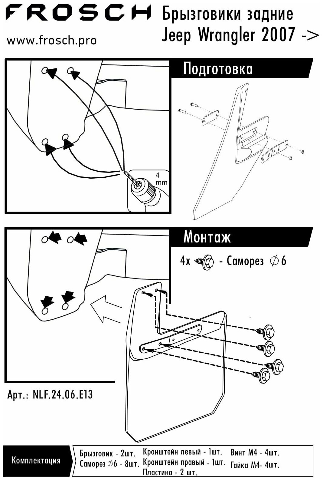 Брызговики задние JEEP Wrangler 24 doors 2007 полиуретановые в пакете 2шт Frosch (NLF.24.06.E13)