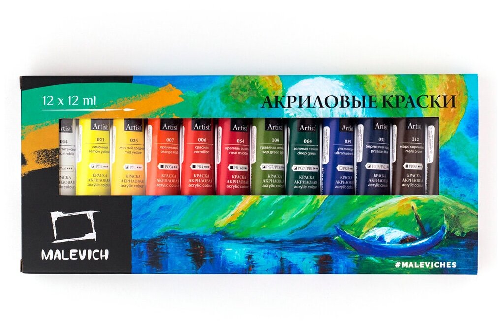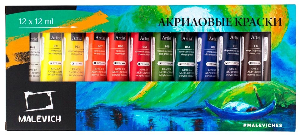 Набор акриловых красок "Малевичъ" 12 цв*12 мл (МЛ-612012)