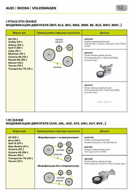 Ролик привод. ремня для автомобилей VW Passat (05-) 2.0d (с натяж. мех.) (CM 5107) TRIALLI