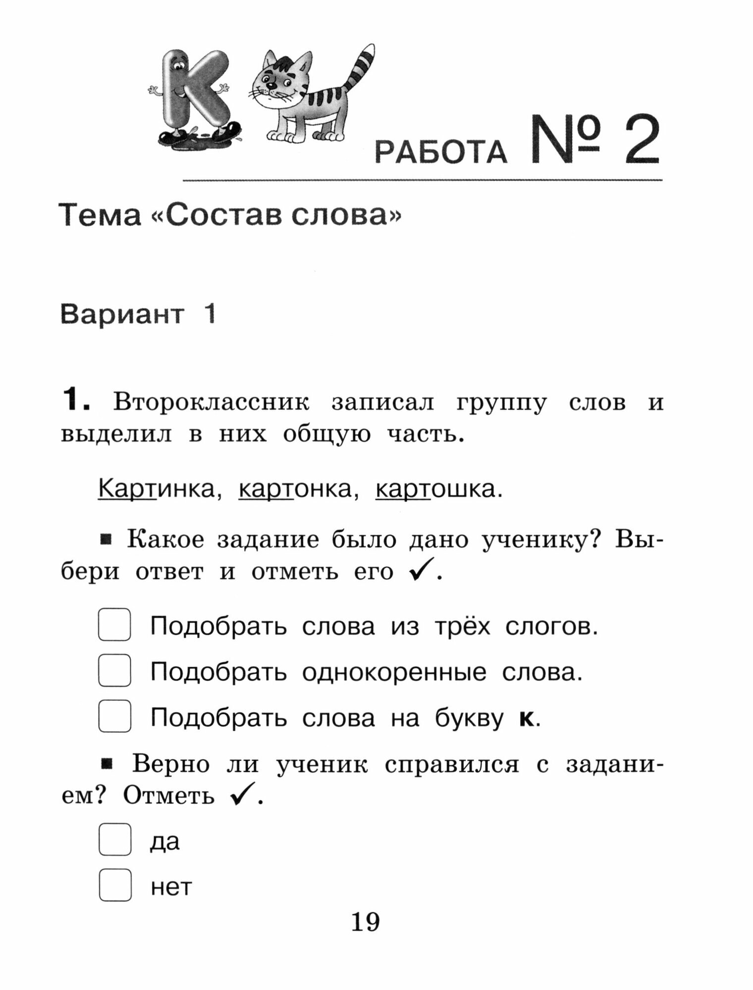 В тетради представлен уровневый подход к организации проверочных работ по русскому языку, что позволяет включить вариативные учебные задания в процедуру контроля успехов второклассников. Предлагаемые задания акцентируют внимание учащихся на проверке их знаний и умений в контексте метапредметных действий.